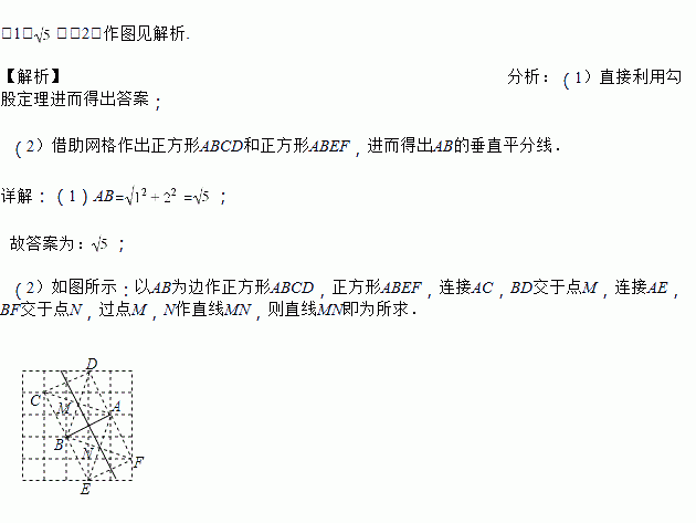 (2)请在如图所示的网格中,用无刻度的直尺,且不能用直尺中的直角,画出线段AB的垂直平分线,并简要说明画图的方法(不要求证明)