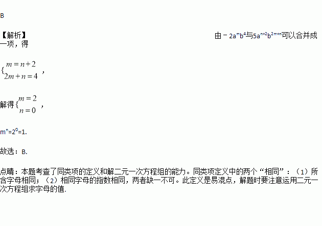 若﹣2amb4与5an+2b2m+n可以合并成一项,则mn的值是( )