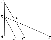 【答案】分析:线段平行,则对应边成比例,题中DK∥AC,可得