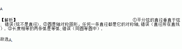 ①平分弦的直径垂直于弦 ②圆是轴对称图形,任何一条直径都是它的对称轴 ③长度相等的两条弧是等弧