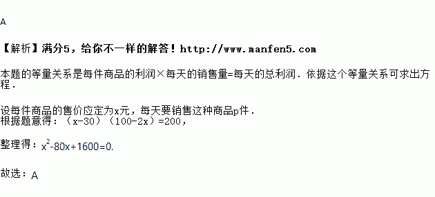 元的利润,根据题意,下面所列方程正确的是( )![]()
