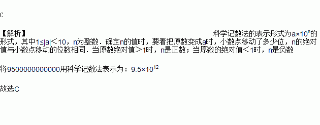 光年是天文学中的距离单位,1光年大约是9500 000 000 000 km,用科学记数法可表示为( )
