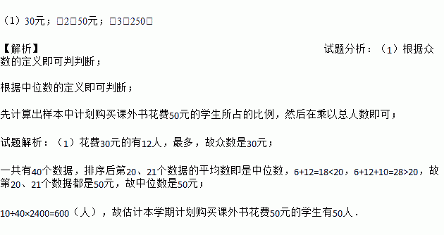 (3)若该校共有学生1000人,根据样本数据,估计本学期计划购买课外书花费50元的学生有 人.