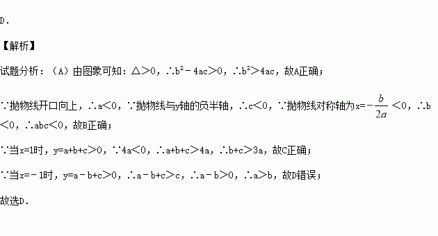 二次函数(a、b、c是常数,且a≠0)的图象如图所示,下列结论错误的是( )