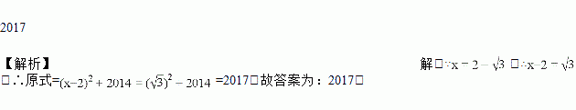 当x=2+时,x2-4x+2018=________.
