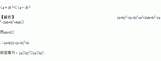 (a+b)2<(a-b)2 【解析】(a+b)2?(a?b)2=a2+2ab+b2?(a2?2ab+b2=4ab, 而ab<0, ∴(a+b)2?(a?b)2<0. 故答案为:(a+b)2<(a-b)2.