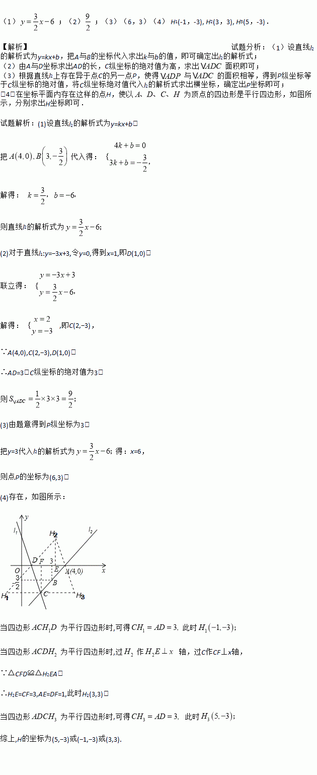 (3)在直线l2上存在异于点C的另一点P,使得△ADP与△ADC的面积相等,求出点P的坐标;