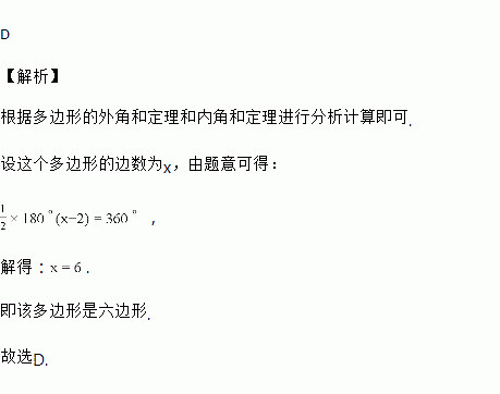 一个多边形的外角和等于它的内角和的倍,这个多边形是( )