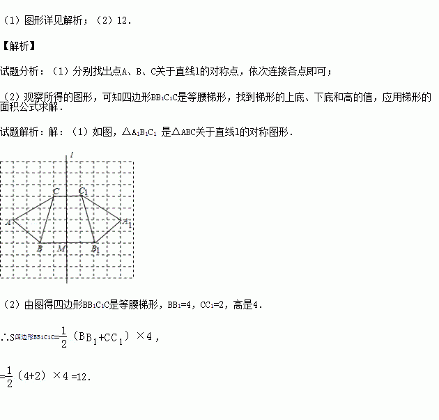 (1)在图中作出△ABC关于直线l对称的△A1B1C1;(要求:A与A1,B与B1,C与C1相对应)
