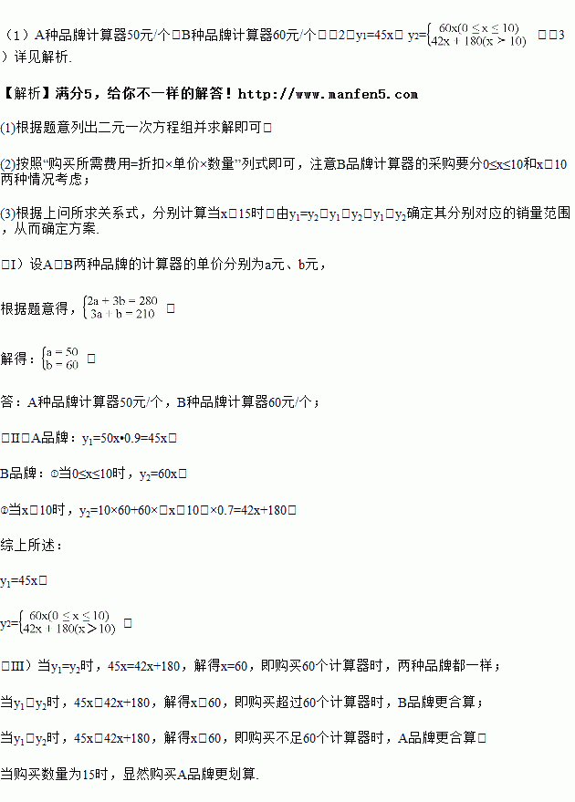 (Ⅲ)某校准备集体购买同一品牌的计算器,若购买计算器的数量超过15个,购买哪种品牌的计算器更合算?请说明理由.