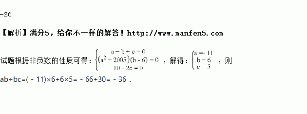 已知实数a、b、c满足+|10﹣2c|=0,则代数式ab+bc的值为__.