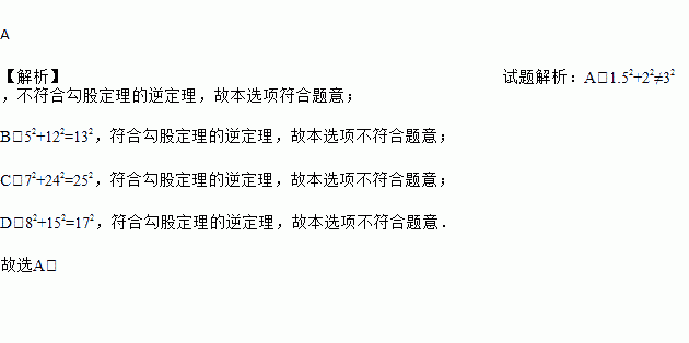 A. 1.5,2,3 B. 5,12,13 C. 7,24,25 D. 8,15,17