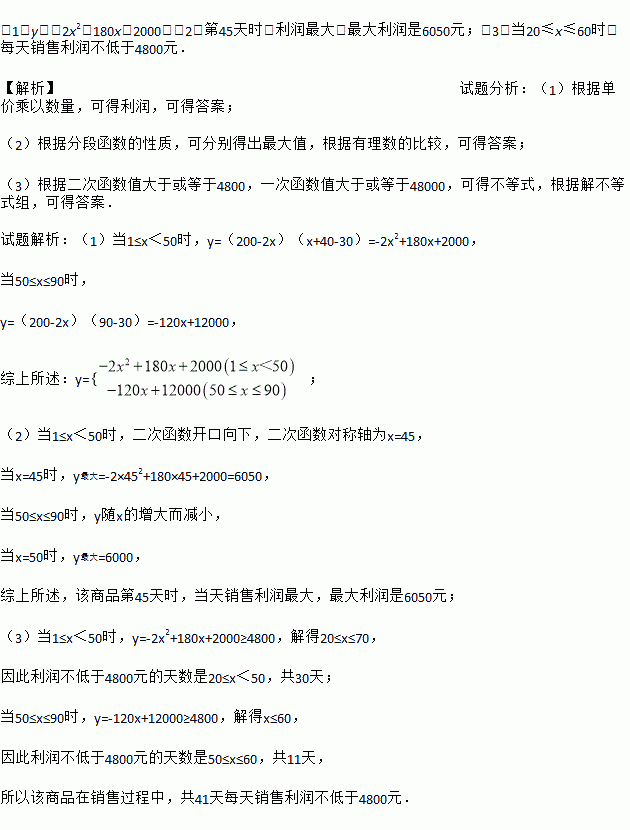(3)该商品在销售过程中,共有多少天每天销售利润不低于4800元?请直接写出结果.