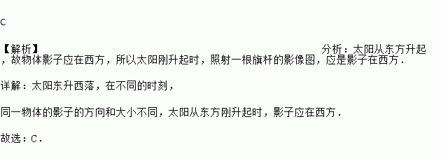 下面四幅图是在同一天同一地点不同时刻太阳照射同一根旗杆的影像图,其中表示太阳刚升起时的影像图是