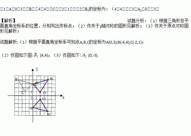 (2)请在这个坐标系内画出△A1B1C1,使△A1B1C1与△ABC关于y轴对称,并写出B1的坐标;