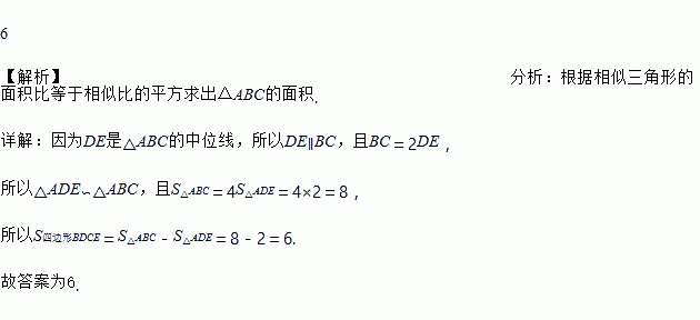 如上图,DE是△ABC的中位线,若S△ADE=2,则S四边形BDCE=________.