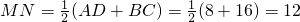 分析:根据题意可得出BC的长,再由AD∥BC,AB=DC得∠DAC=∠ACD,即得AD=CD=8,根据梯形的中位线定理可得出MN的长.