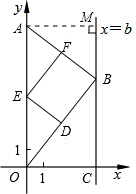 (3)当∠ABO=90°时,四边形DEFB是矩形,由Rt△OCB∽Rt△ABO,根据相似比得OB2=OA•BC,由勾股定理得OB2=BC2+OC2,利用b、t分别表示线段的长,列方程求解.