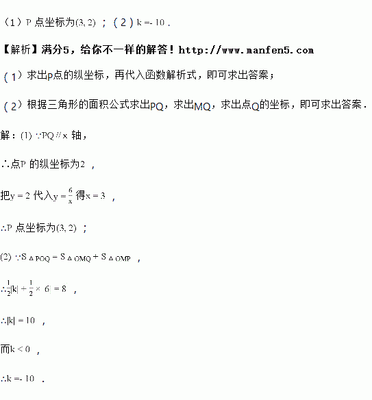 如图,在平面直角坐标系中,过点M(0,2)的直线l与x轴平行,且直线l分别与反比例函数y=