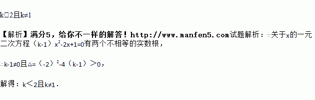 关于x的一元二次方程(k-1)x2-2x+1=0有两个不相等的实数根,则实数k的取值范围是_______.