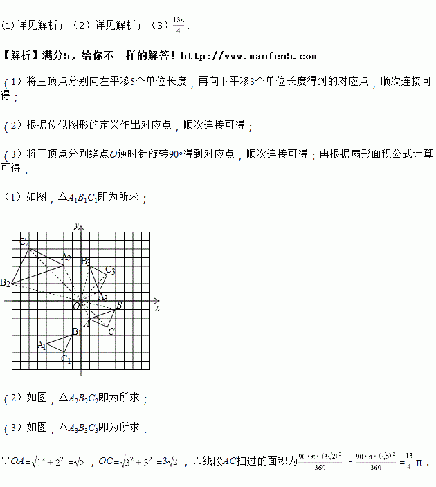 (3)以坐标原点O为旋转中心,将△ABC逆时针旋转90°,得到△A3B3C3,作出△A3B3C3,并求线段AC扫过的面积.