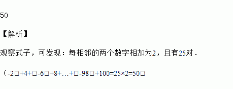 (﹣2)+4+(﹣6)+8+…+(﹣98)+100=_____.
