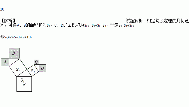 如图是一株美丽的勾股树,其中所有的四边形都是正方形,所有的三角形都是直角三角形,若正方形A、B、C、D的面积分别为2,5,1,2.则最大的正方形E的面积是___________.