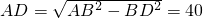 在Rt△ABD中,AB=50,BD=30,