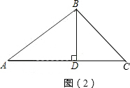 (2)若∠ACB为锐角时,作BD⊥AC交AC于D;两种情况下,分别利用勾股定理解直角三角形可求出△ABC的高,则面积可求.