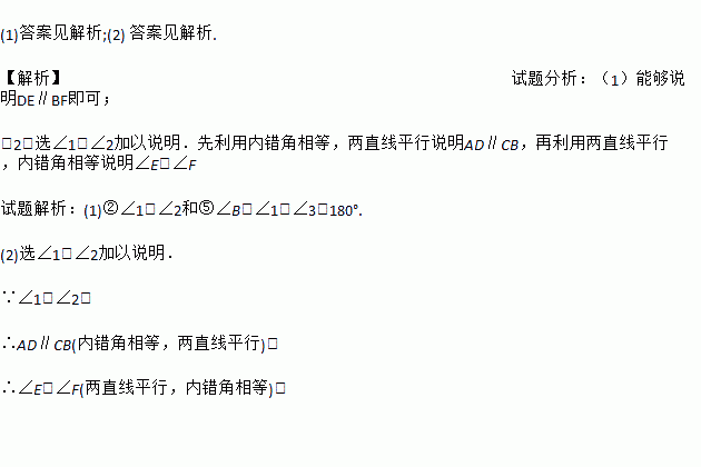 (1)指出上述各项中哪一项能作为题设来说明∠E=∠F;