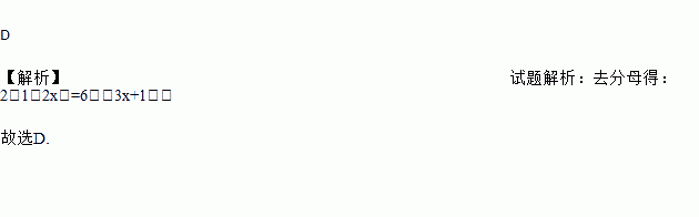 C. 2﹣4x=6﹣3x+1 D. 2(1﹣2x)=6﹣(3x+1)