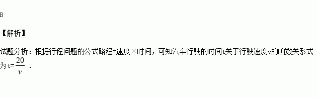 已知甲、乙两地相距20千米,汽车从甲地匀速行驶到乙地,则汽车行驶时间t(单位:小时)关于行驶速度v(单位:千米/小时)的函数关系式是( )