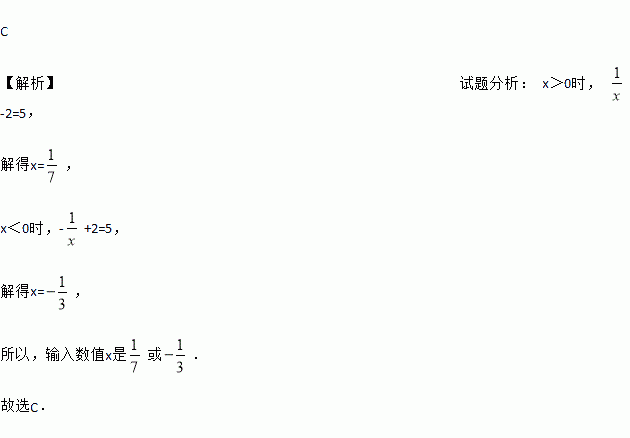 如图,根据流程图中的程序,当输出数值y=5时,输入数值x是( )