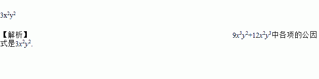 9x3y2+12x2y3中各项的公因式是_____.