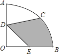 如图,在圆心角为的扇形OAB中,半径,C为弧AB的中点,D、E分别是OA、OB的中点,则图中阴影部分的面积为 .