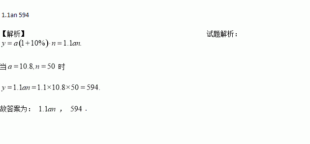 邮购一种图书,每册书的定价为a元,另加书价的10%作为邮资,购书n册,总计金额为y元,则y=________;当n=10.8,n=50时,y的值为________.