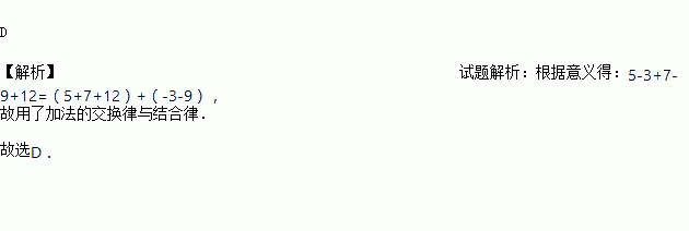 计算5-3+7-9+12=(5+7+12)+(-3-9)是应用了 ( )