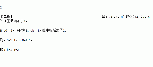 如图,A、B的坐标分别为(1,0)、(0,2),若将线段AB平移到至A1B1,A1、B1的坐标分别为(2,a)、(b,3),则a+b=______.