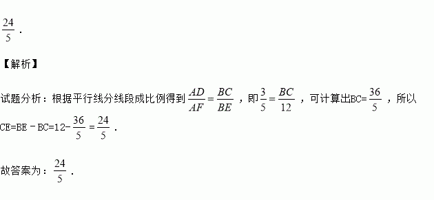 如图,已知AB∥CD∥EF,AD:AF=3:5,BE=12,那么CE的长等于 .
