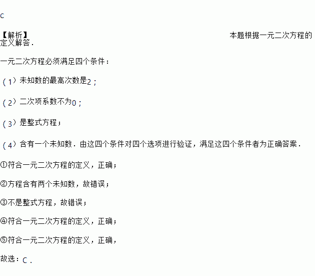 下列方程中,一元二次方程共( )①3x 2 +x=20;②x2 +y2 =5;③x2-=4;④x2 =1;⑤x2 -+3=0.