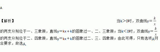 函数y=与y=kx+k(k为常数且k≠0)在同一平面直角坐标系中的图象可能是( )