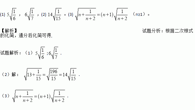 (3) 请你将猜想到的规律用含有自然数n(n≥1)的代数式表达出来。