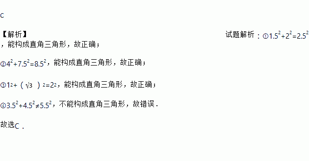 三角形的边长之比为:①1.5∶2∶2.5;②4∶7.5∶8.5;③1∶∶2;④3.5∶4.5∶5.5.其中可以构成直角三角形的有( )