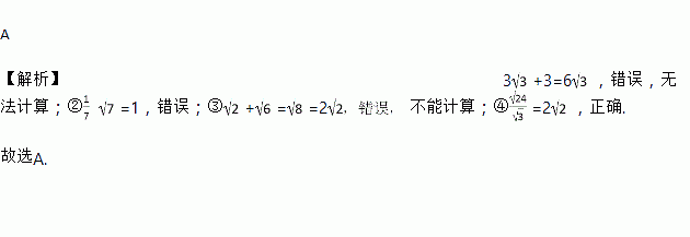 下列各式:①3+3=6;② =1;③+==2;④=2,其中错误的有( ).