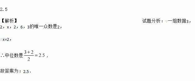 一组数据3,2,x,2,6,3的唯一众数是2,则这组数据的中位数为_____