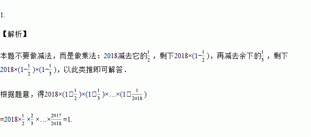 将2018减去它的,再减去余下的,再减去余下的……以此类推,直至减去余下的,最后的得数是多少?