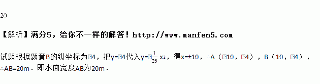 河北省赵县的赵州桥的拱桥是近似的抛物线形,建立如图所示的平面直角坐标系,其函数的关系式为,当水面离桥拱顶的高度DO为4m时,这时水面宽度AB 为______________.