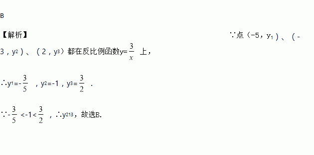 若点A(-5,y1),B(-3,y2),C(2,y3)在反比例函数