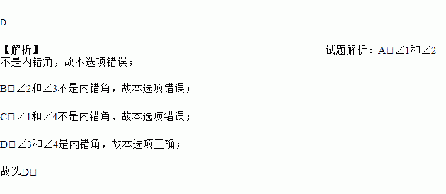 A. ∠1和∠2 B. ∠2和∠3 C. ∠1和∠4 D. ∠3和∠4