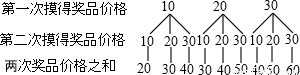 ijÉ̳¡¸ãÃþ½±´ÙÏú»î¶¯£ºÉ̳¡ÔÚÒ»Ö»²»Í¸Ã÷µÄÏä×ÓÀï·ÅÁËÈý¸öÏàͬµÄСÇò£¬ÇòÉÏ·Ö±ðдÓС°10Ôª¡±¡¢¡°20Ôª¡±¡¢¡°30Ôª¡±µÄ×ÖÑù£®¹æ¶¨£º¹Ë¿ÍÔÚ±¾É̳¡Í¬Ò»ÈÕÄÚ£¬Ã¿Ïû·ÑÂú100Ôª£¬¾Í¿ÉÒÔÔÚÕâÖ»Ïä×ÓÀïÃþ³öÒ»¸öСÇò£¨¹Ë¿Íÿ´ÎÃþ³öСÇò¿´¹ýºóÈÔÈ»·Å»ØÏäÄÚ½ÁÔÈ£©£¬É̳¡¸ù¾Ý¹Ë¿ÍÃþ³öСÇòÉÏËù±ê½ð¶î¾ÍËÍÉÏÒ»·ÝÏàÓ¦µÄ½±Æ·£®ÏÖÓÐÒ»¹Ë¿ÍÔÚ¸ÃÉ̳¡Ò»´ÎÐÔÏû·ÑÁË235Ôª£¬°´¹æ¶¨£¬¸Ã¹Ë¿Í¿ÉÒÔÃþ½±Á½´Î£¬Çó¸Ã¹Ë¿ÍÁ½´ÎÃþ½±Ëù»ñ½±Æ·µÄ¼Û¸ñÖ®ºÍ³¬¹ý40ÔªµÄ¸ÅÂÊ£®